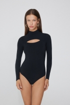 Боди-Лонгслив из Микрофибры с Вырезом в Форме Полумесяца