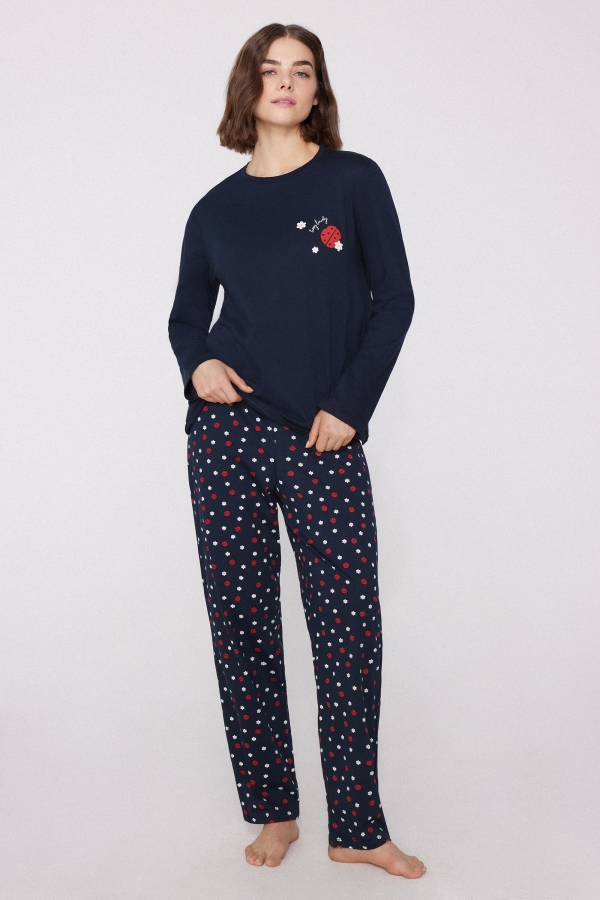 - Длинная Хлопковая Пижама с Принтом «Божьи Коровки»
