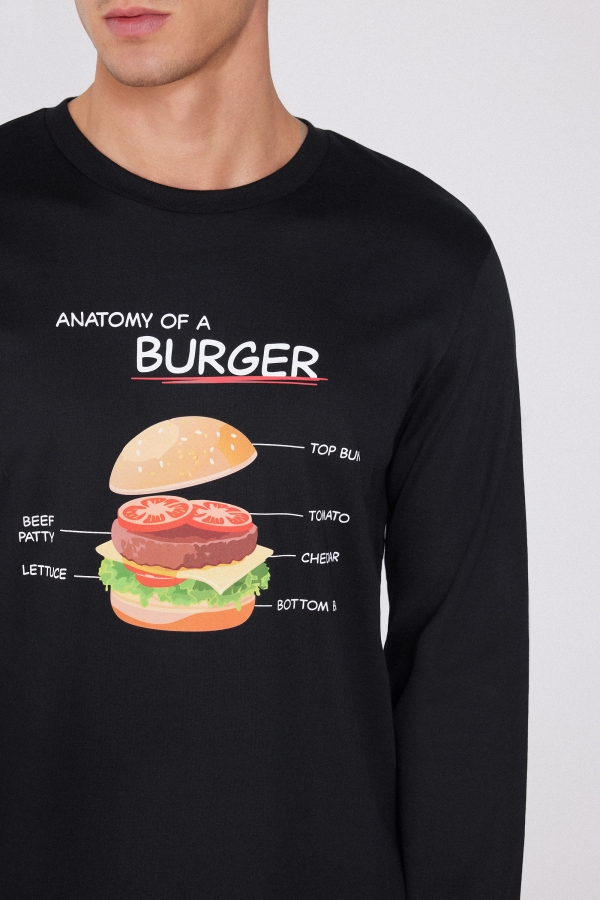 - Длинная Хлопковая Пижама с Принтом «Бургер»