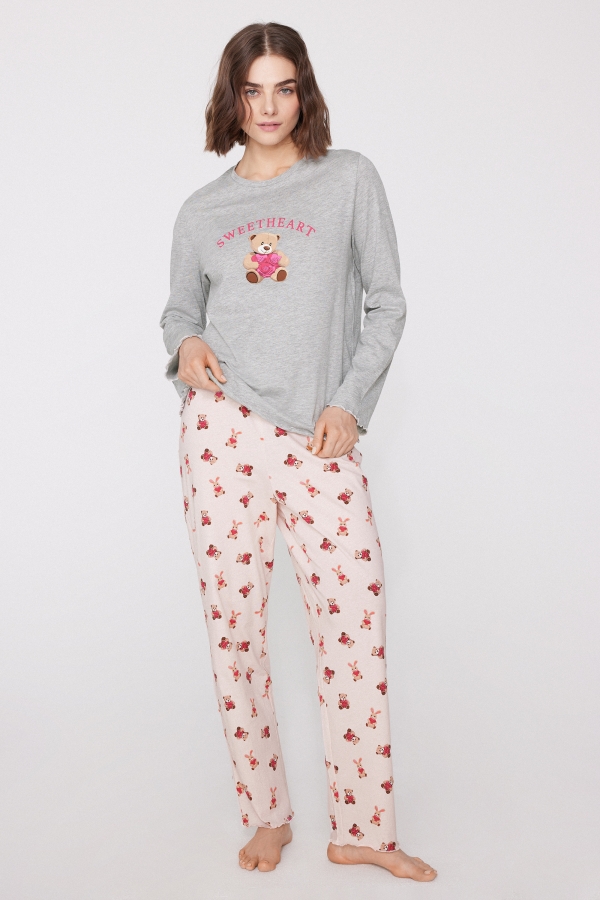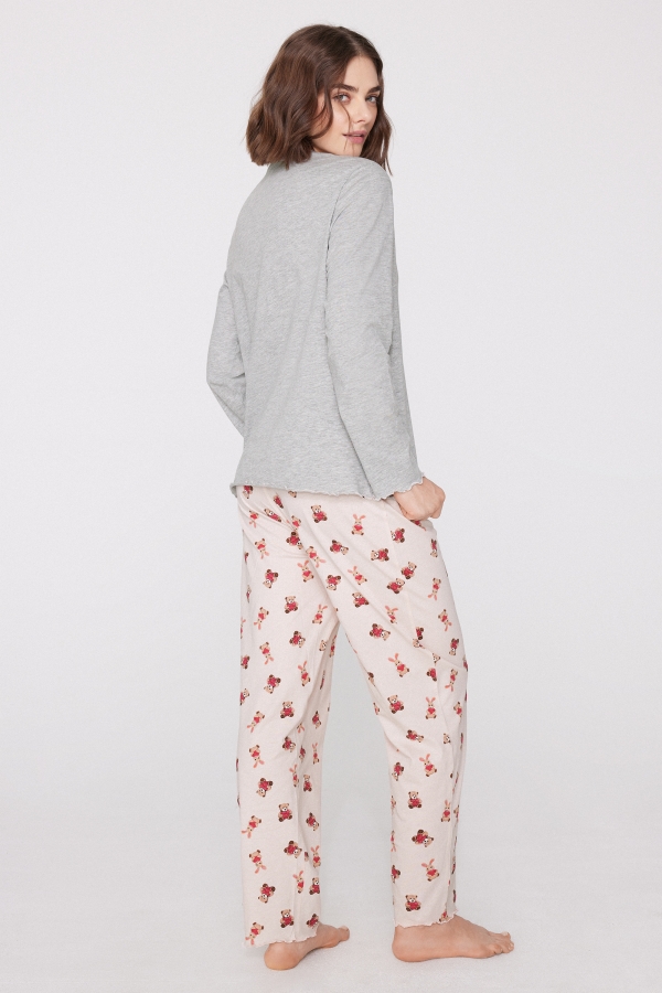- Длинная Хлопковая Пижама с Принтом «Медвежата»