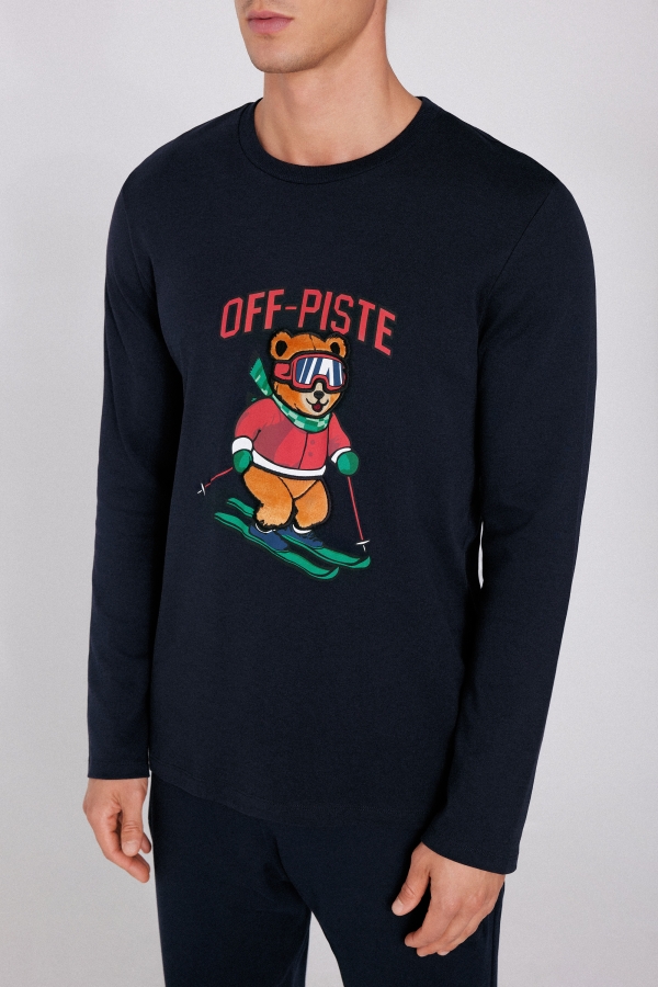 - Длинная Хлопковая Пижама с Принтом Off Piste