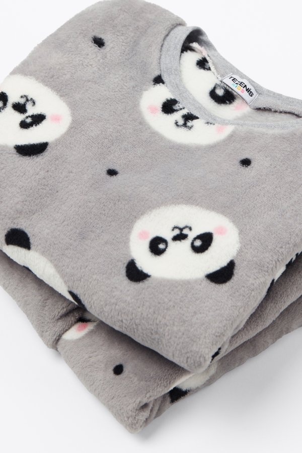 - Длинная Пижама из Легкого Флиса с Принтом «Панды» для Девочек