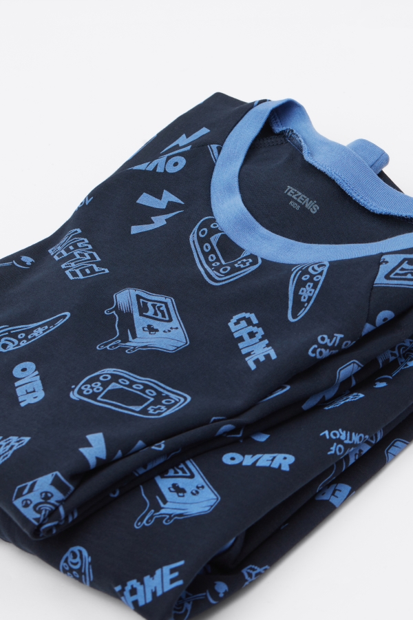 - Длинная Пижама из Плотного Хлопка с Принтом «Игра» для Мальчиков