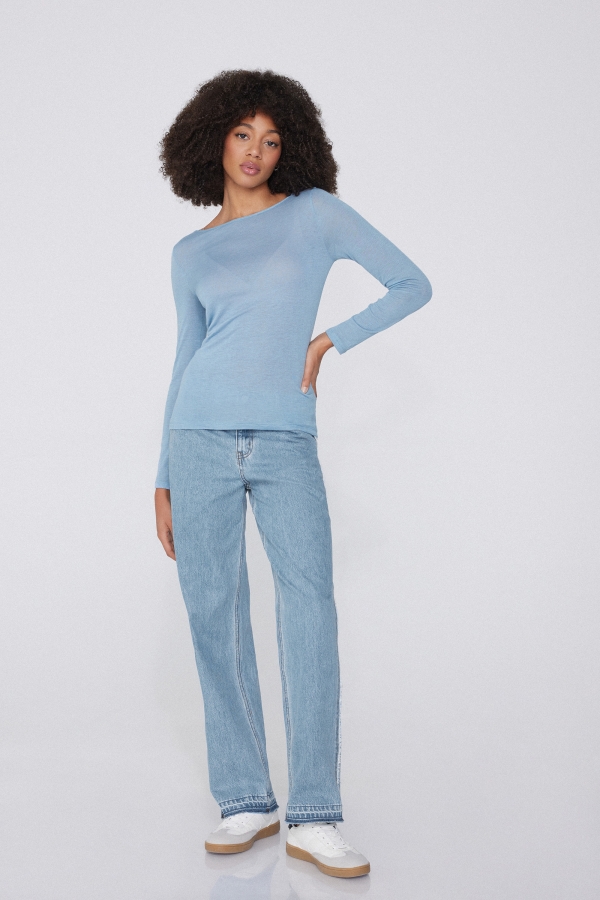 - Джемпер из Вискозы и Мериносовой Шерсти с Вырезом «Лодочка»