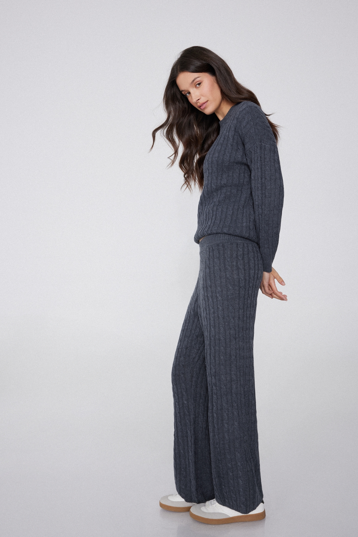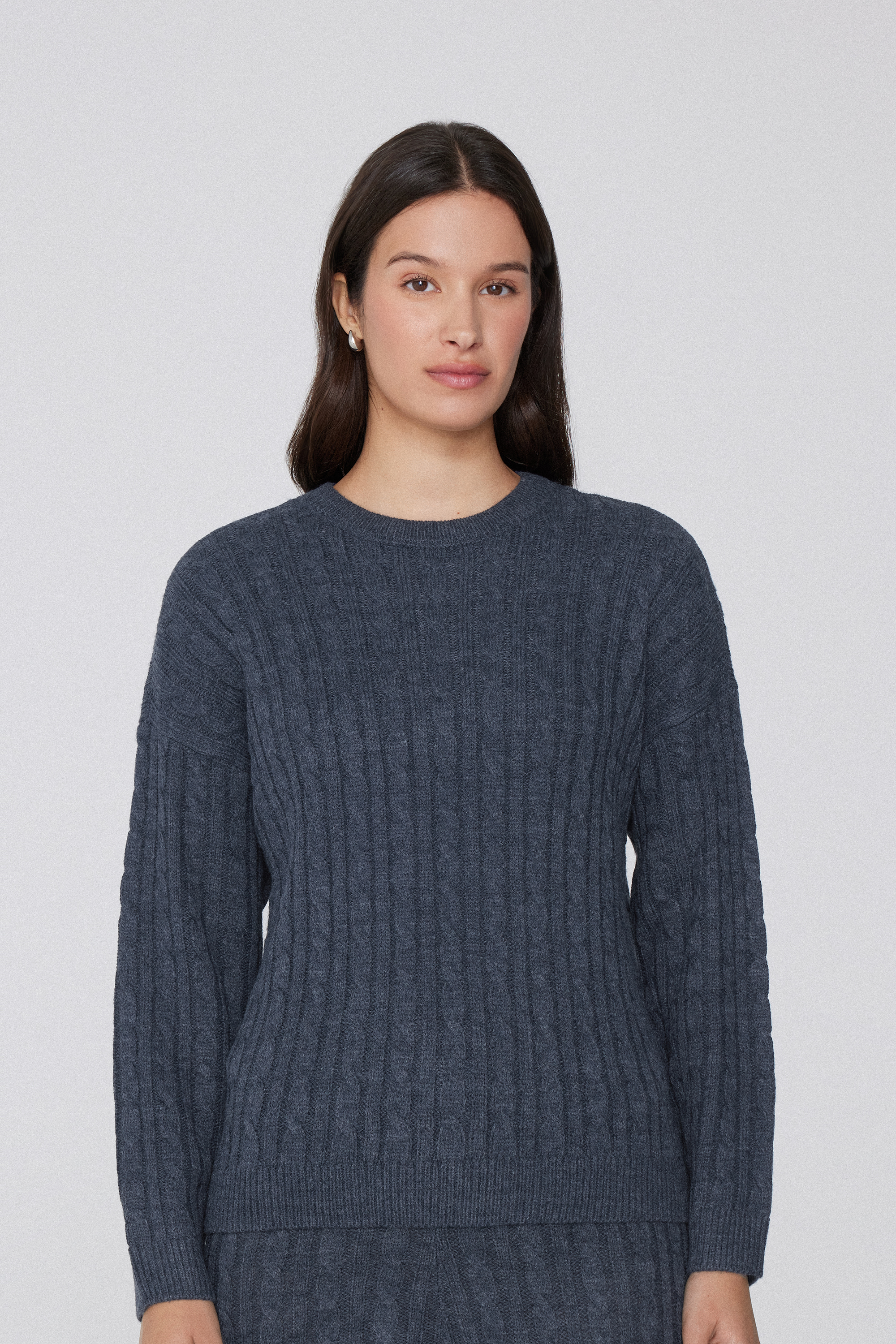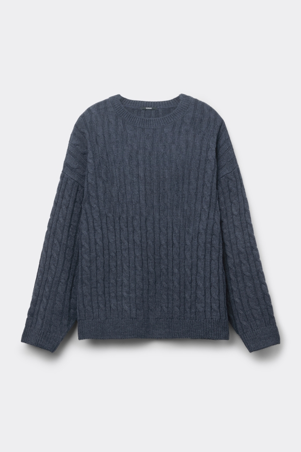 - Джемпер в Косичку с Длинными Рукавами и Круглым Вырезом