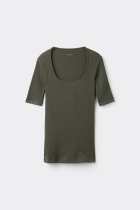 - Футболка из Хлопка в Рубчик с Короткими Рукавами и Квадратным Вырезом