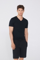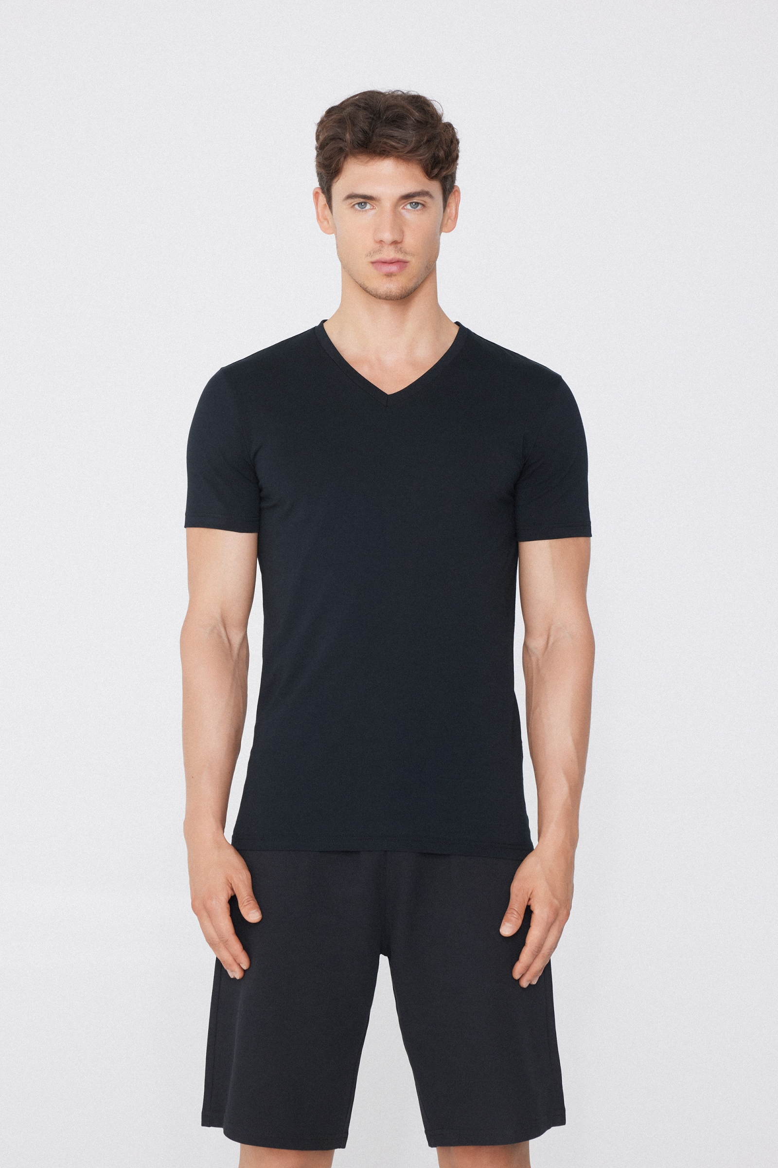 Мужская футболка с V-образным вырезом из эластичного хлопка — незаменимая вещь в гардеробе! Мягкий комфортный крой делает эту модель идеальным дополнением уютного домашнего костюма, но благодаря универсальности дизайна и расцветок футболку можно сочетать и с другими образами. Эластичная мужская футболка с V-образным вырезом дополнит как повседневные, так и классические наряды. Ее можно носить под свитером и толстовкой зимой, а также в качестве основы для более продуманных и изысканных образов. Кроме того, мужская футболка с V-образным вырезом от Tezenis выполнена из легкой и дышащей ткани и имеет облегающий эластичный крой. На сайте представлено несколько вариантов цветов. Черная или белая футболка из эластичного хлопка с V-образным вырезом — это классика, но серые или синие варианты также очень популярны.