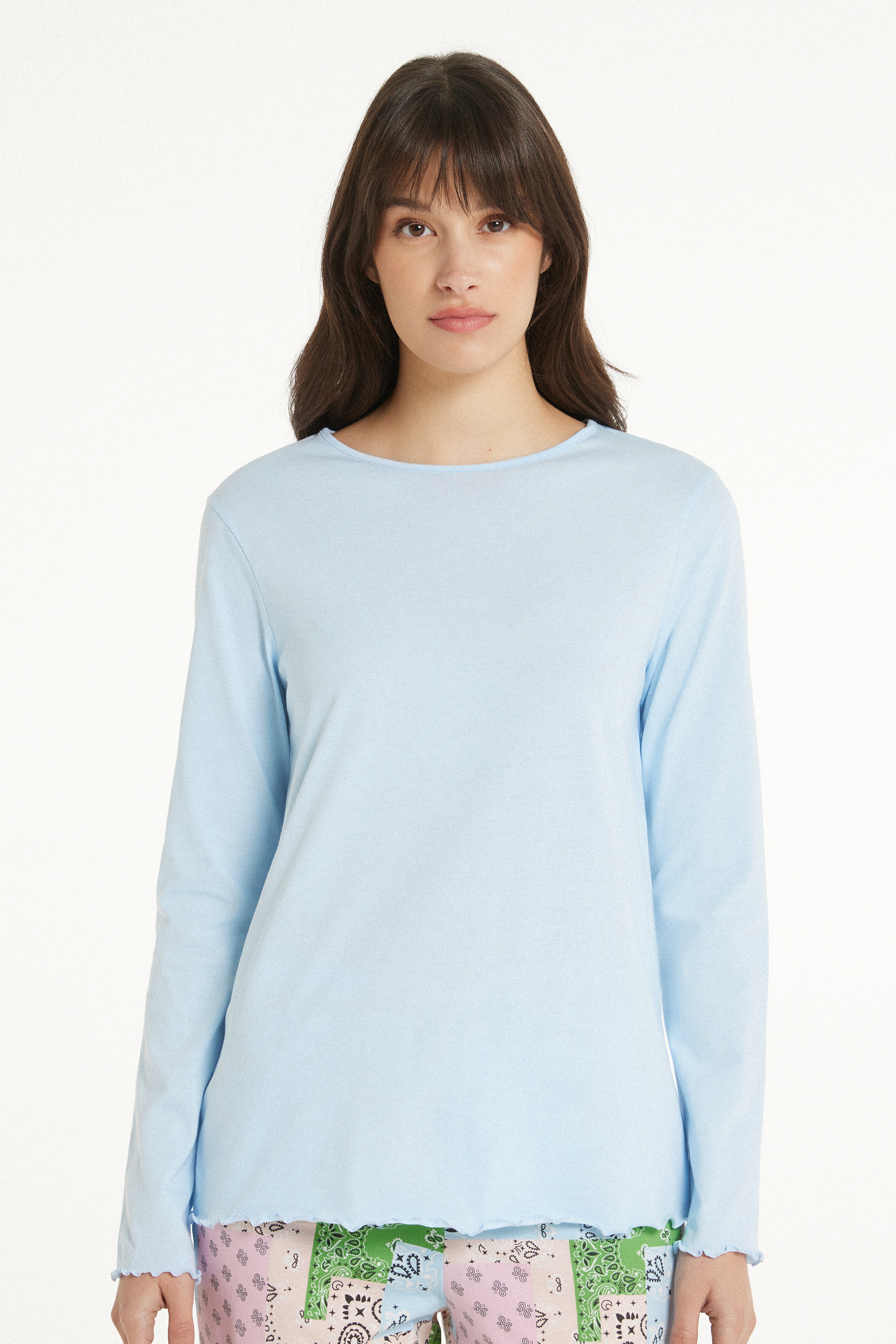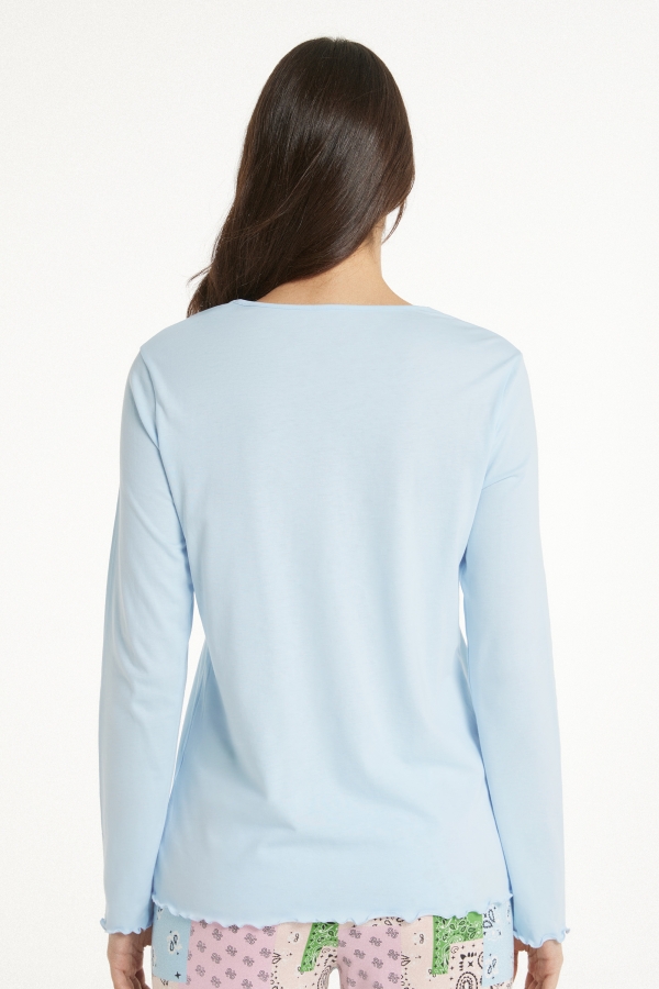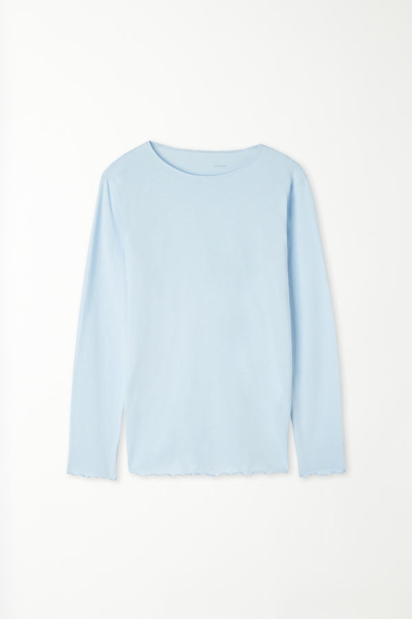Хлопковый Топ с Длинными Рукавами и Волнистым Краем