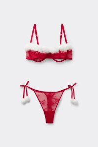 Комплект: Бюстгальтер Деми и Стринги с Помпонами