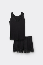 - Короткая Пижама из Вискозы и Кружева с Широкими Бретелями