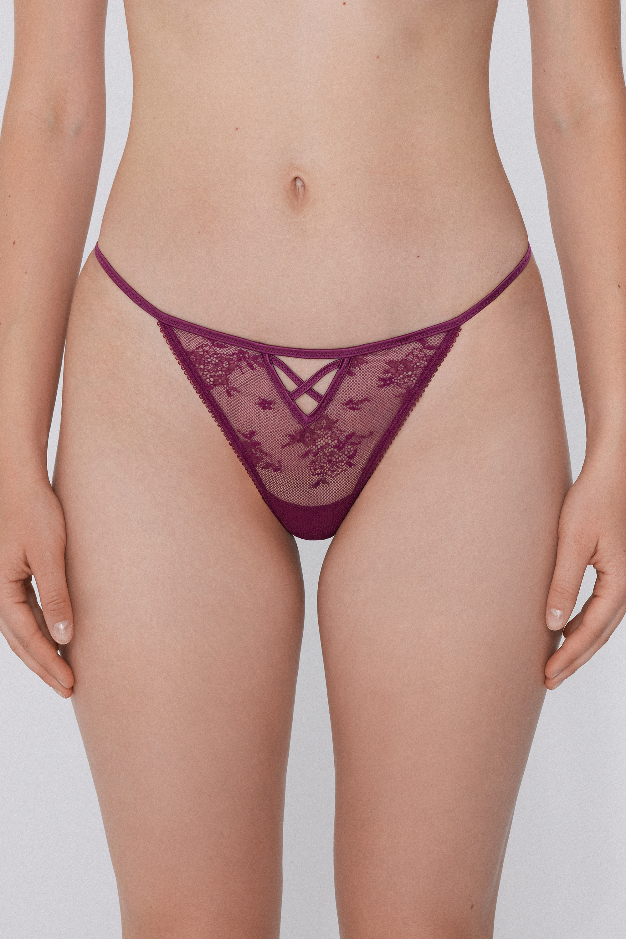 - Кружевные Стринги Танга с Тесемками и Перекрестной Деталью