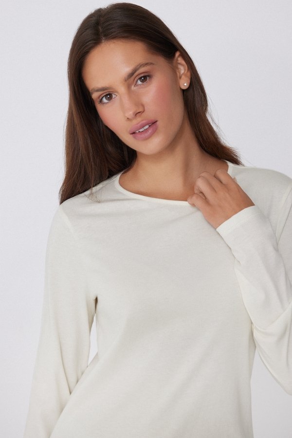- Лонгслив с Круглым Вырезом из 100% Хлопка