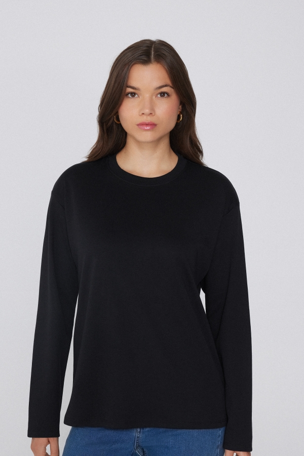 Лонгслив с Круглым Вырезом из 100% Хлопка Средней Плотности