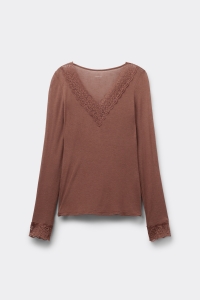 - Лонгслив с V-образным Вырезом из Кружева и Мериносовой Шерсти