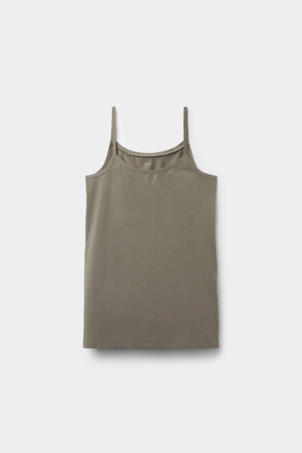 Эластичная женская майка на тонких бретелях — незаменимый атрибут гардероба. Благодаря базовому лаконичному дизайну модель с круглым вырезом горловины прекрасно подойдет для самых разных случаев независимо от сезона! Летом изделие можно носить в паре с шортами, а зимой — под джемперами или толстовками. Эта женская майка из эластичного органического хлопка послужит идеальной основой многочисленных повседневных образов, а также отлично дополнит спортивный аутфит для тренировок. Облегающий крой и мягкий комфортный трикотаж делают ее одной из самых популярных и востребованных моделей.