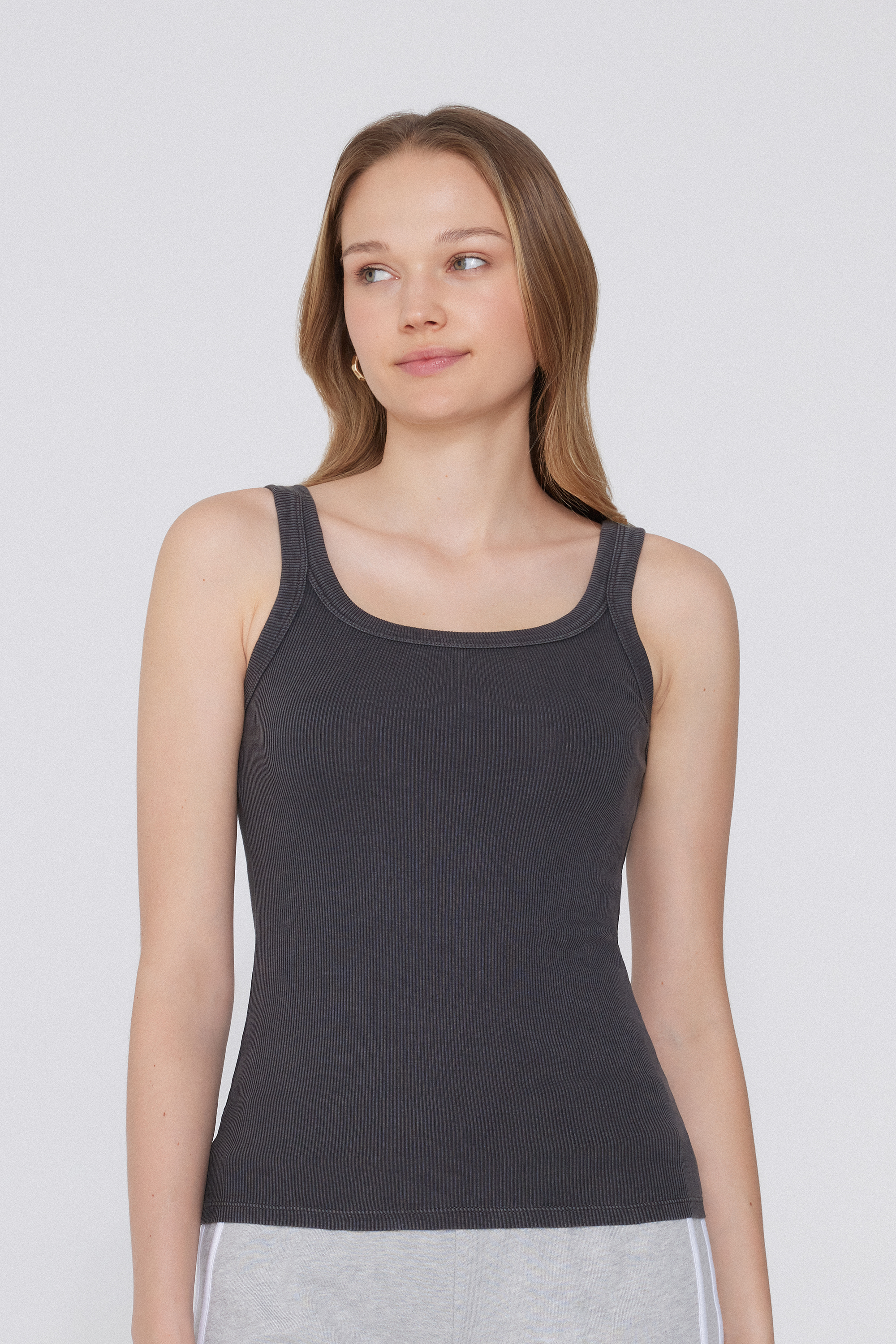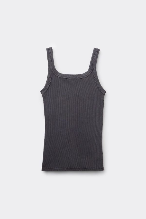 Майка в Рубчик на Широких Бретелях с Эффектом Делаве