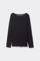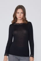- Ультралегкий Лонгслив из Смесовой Мериносовой Шерсти с Вырезом Бато и Кружевной Каймой